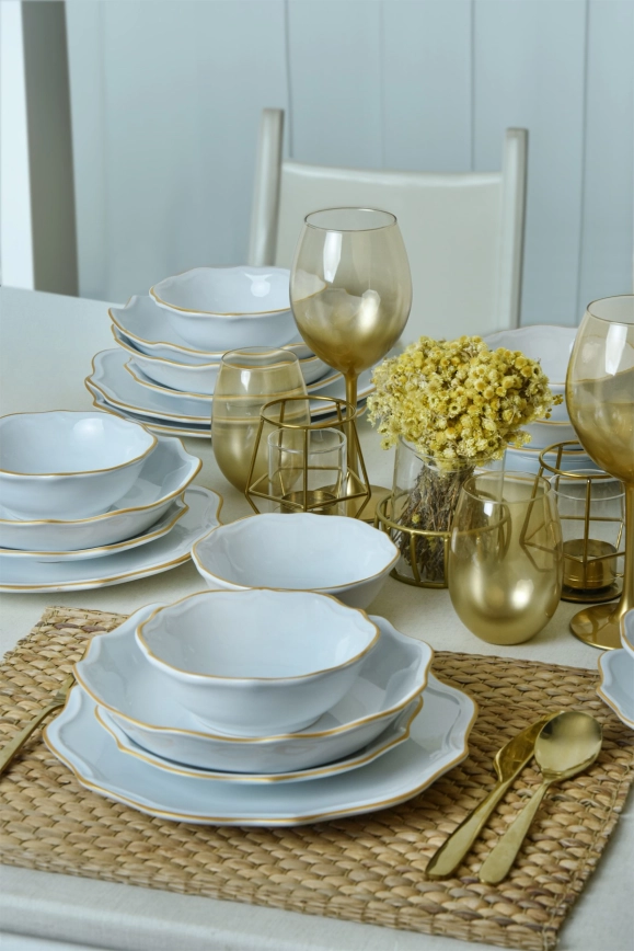 Juego de vajilla de 24 piezas blanco/dorado/gres