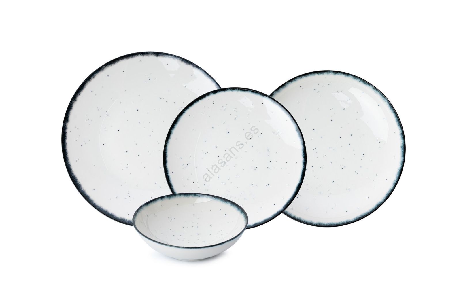 Juego de vajilla de 24 piezas blanco/negro/porcelana