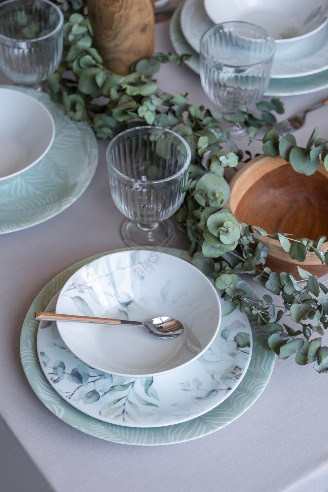 Juego de vajilla de 24 piezas, blanco/verde, porcelana