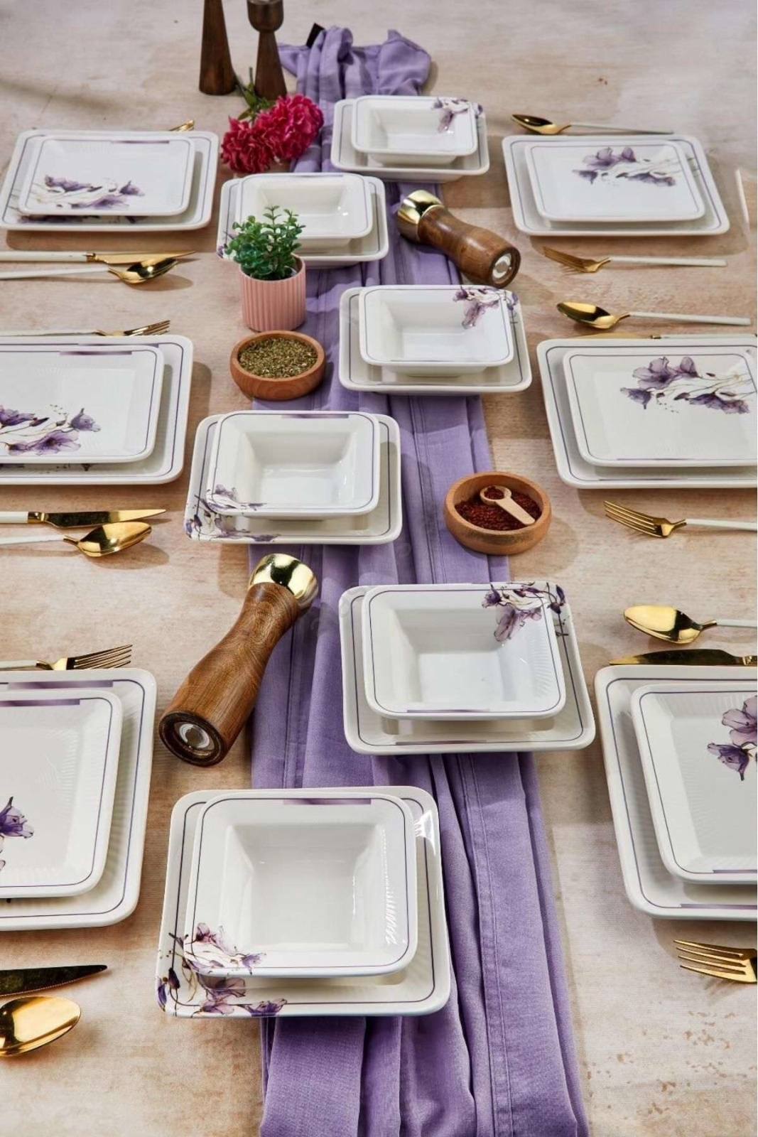 Juego de vajilla de 24 piezas, blanco/violeta, cerámica