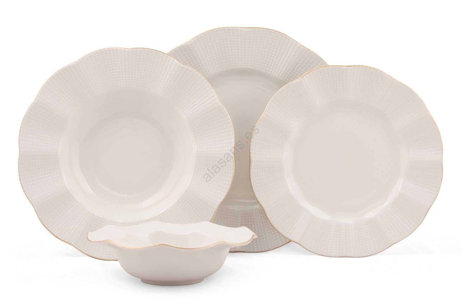 Juego de vajilla de 24 piezas en porcelana blanca con detalles dorados