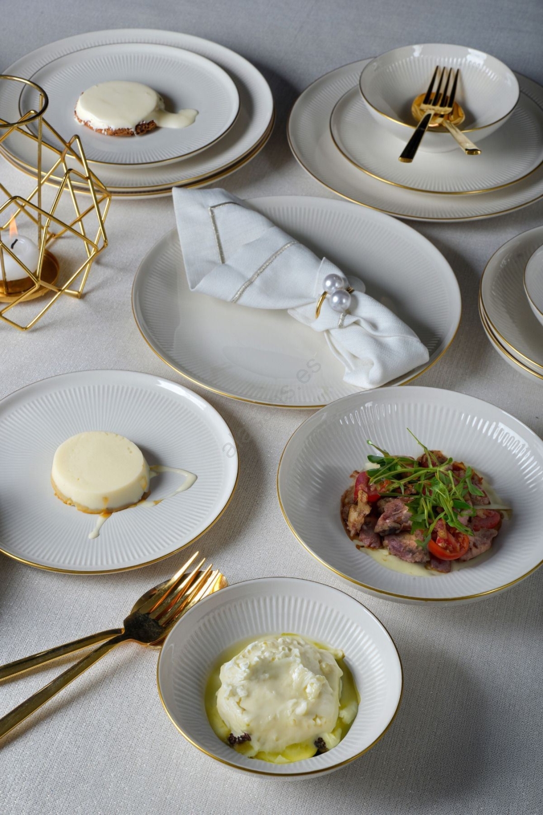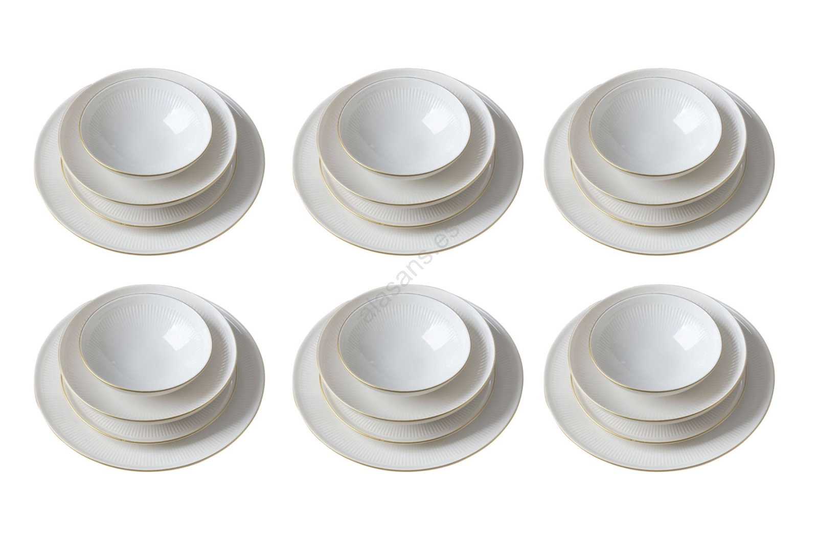Juego de vajilla de 24 piezas en porcelana blanca con detalles dorados