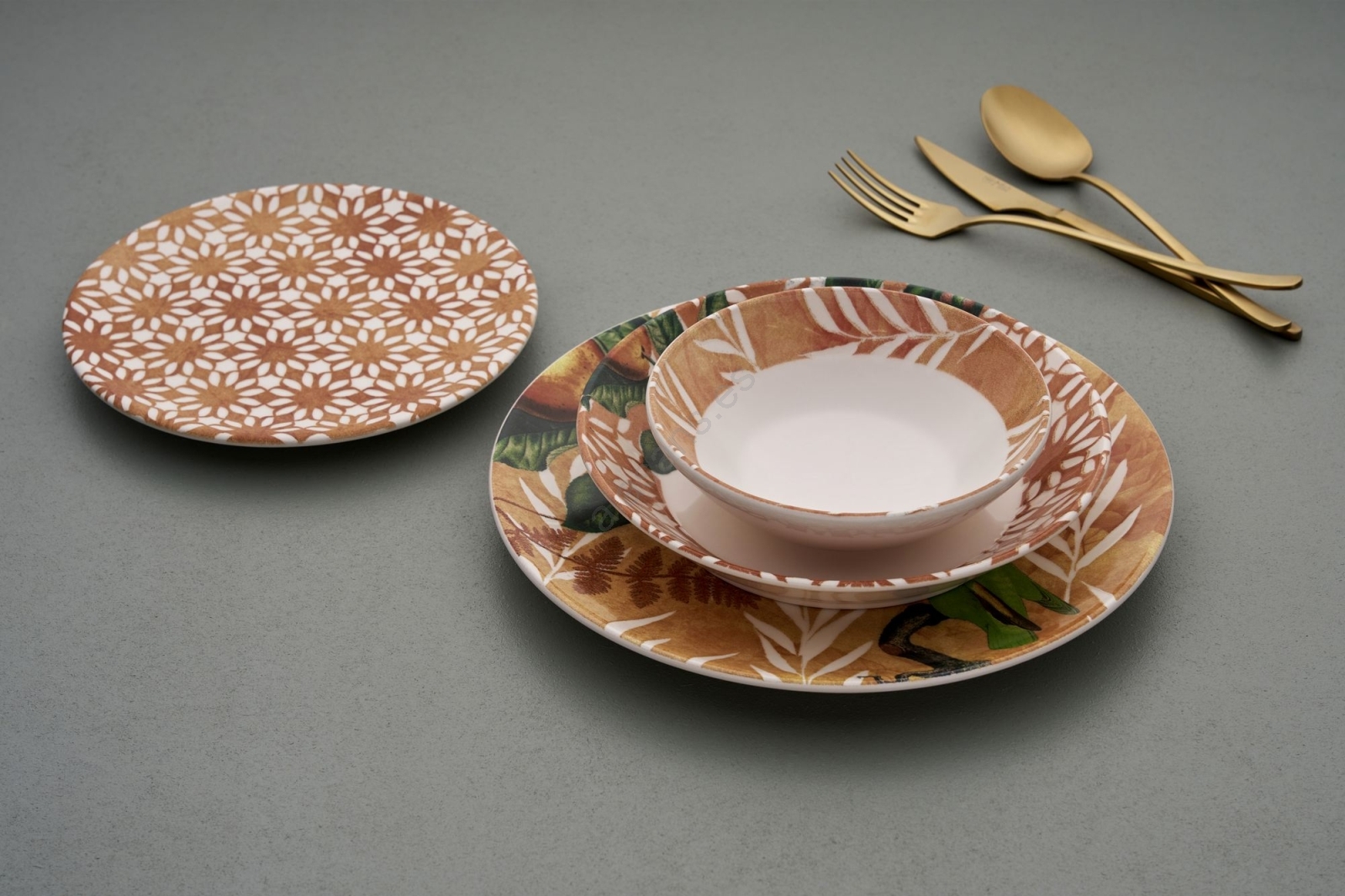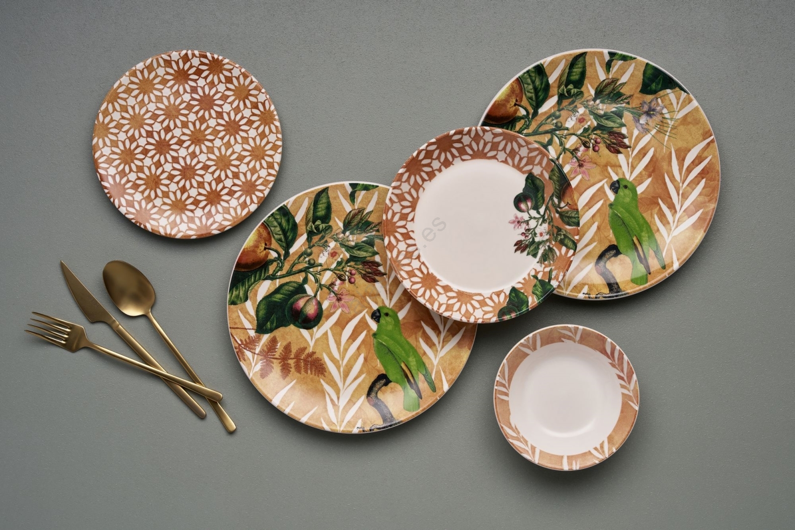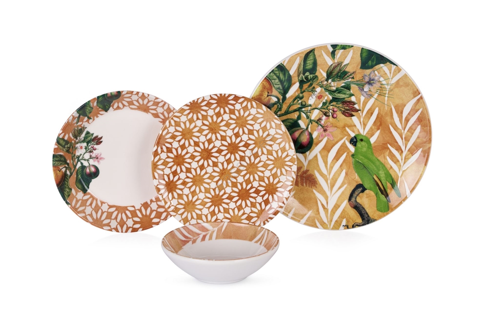 Juego de vajilla de 24 piezas, naranja y verde, cerámica