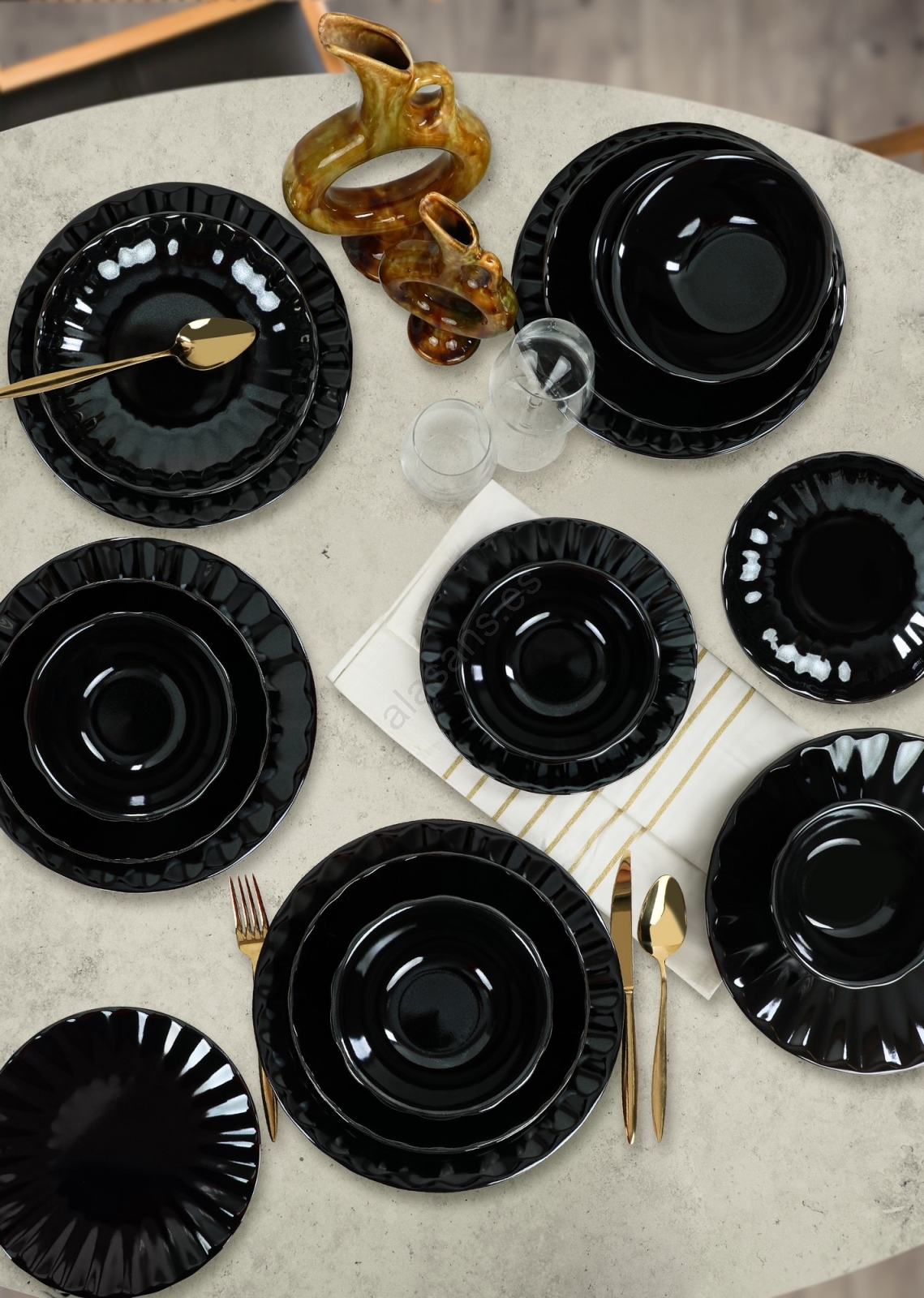 Juego de vajilla de 24 piezas, negro/gres