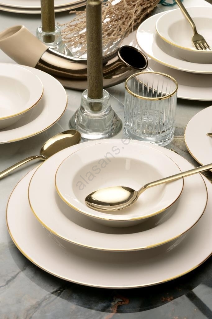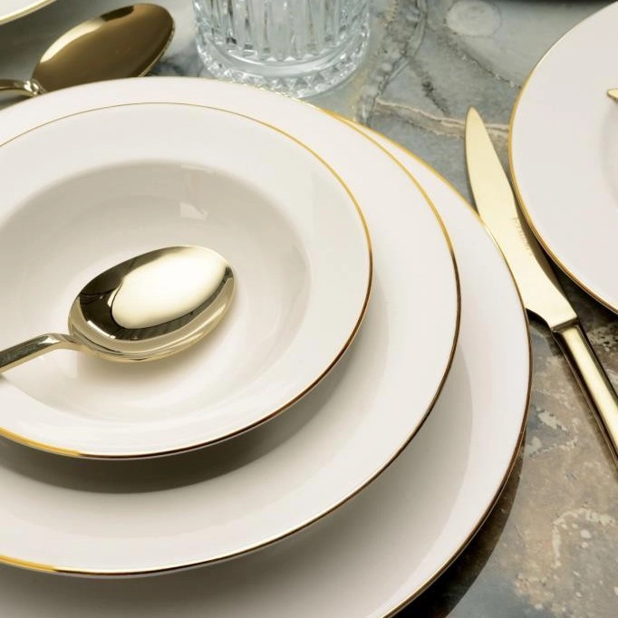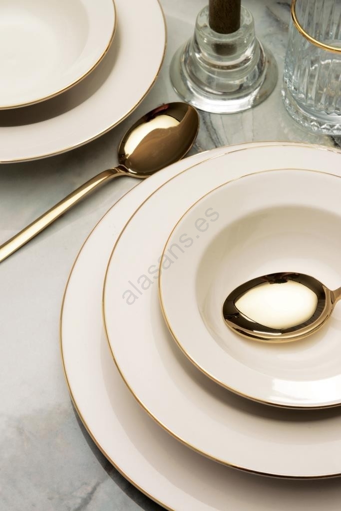 Juego de vajilla de 24 piezas — porcelana crema con detalles dorados