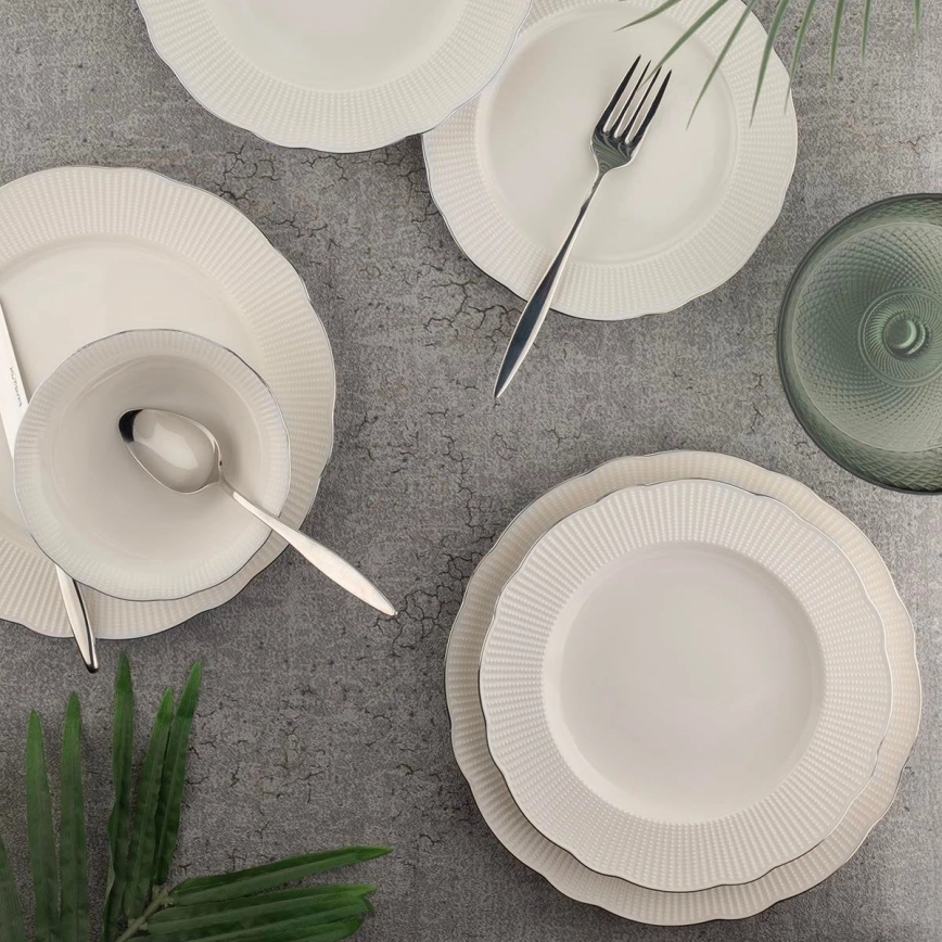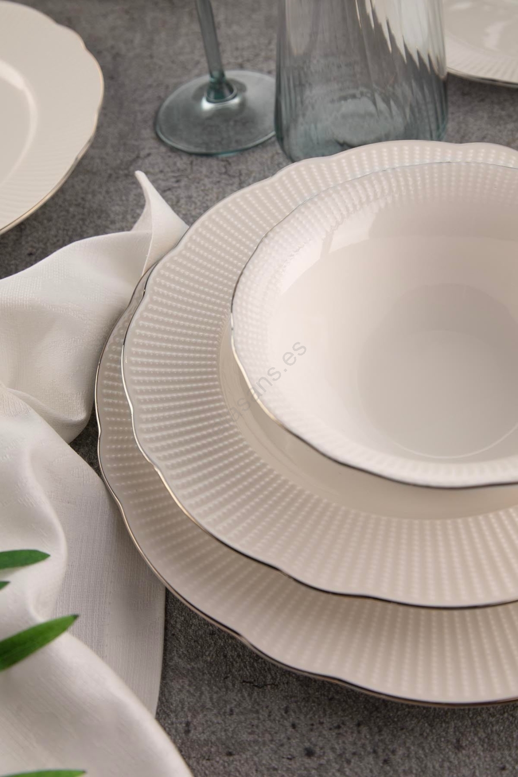 Juego de vajilla de 26 piezas de porcelana, color blanco/plata/marfil