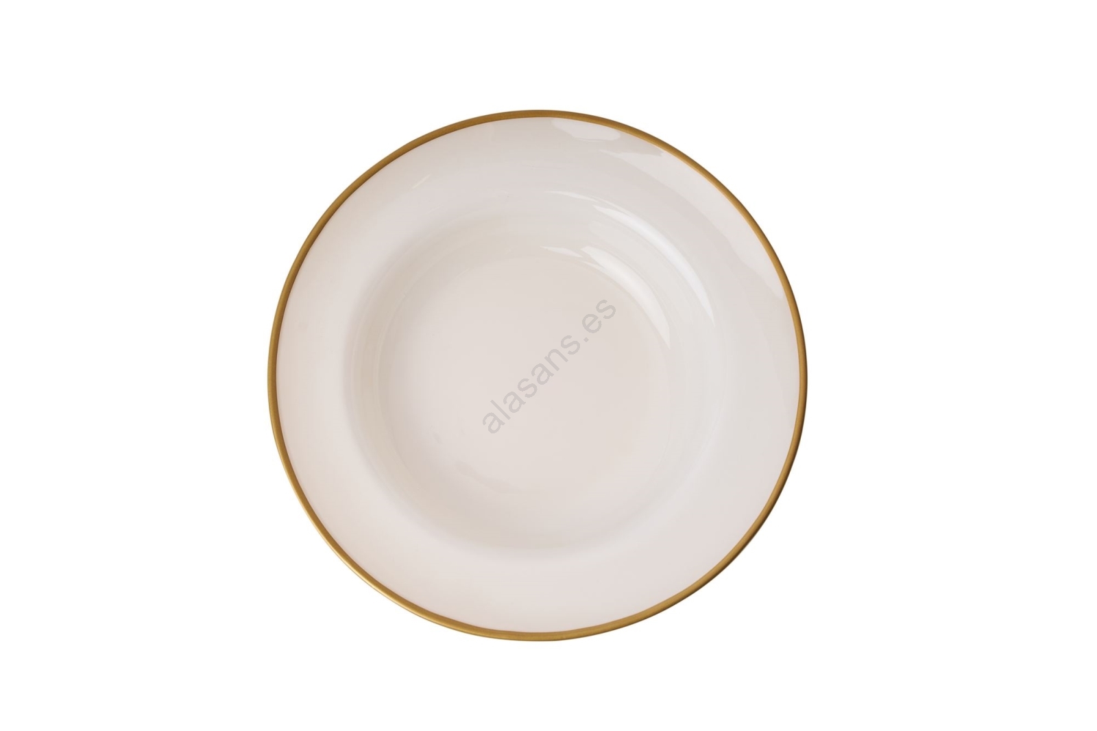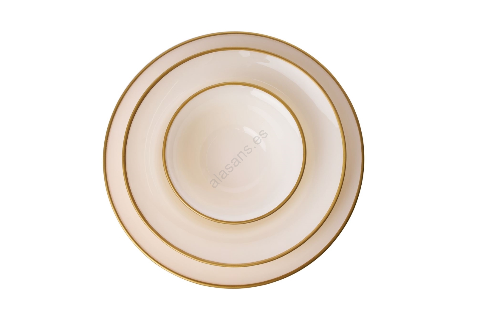 Juego de vajilla de porcelana de 18 piezas, beige con detalles dorados