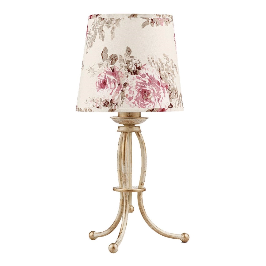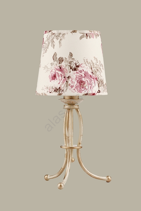 • La lámpara tiene un marco de metal en color ecru y una pantalla decorativa.