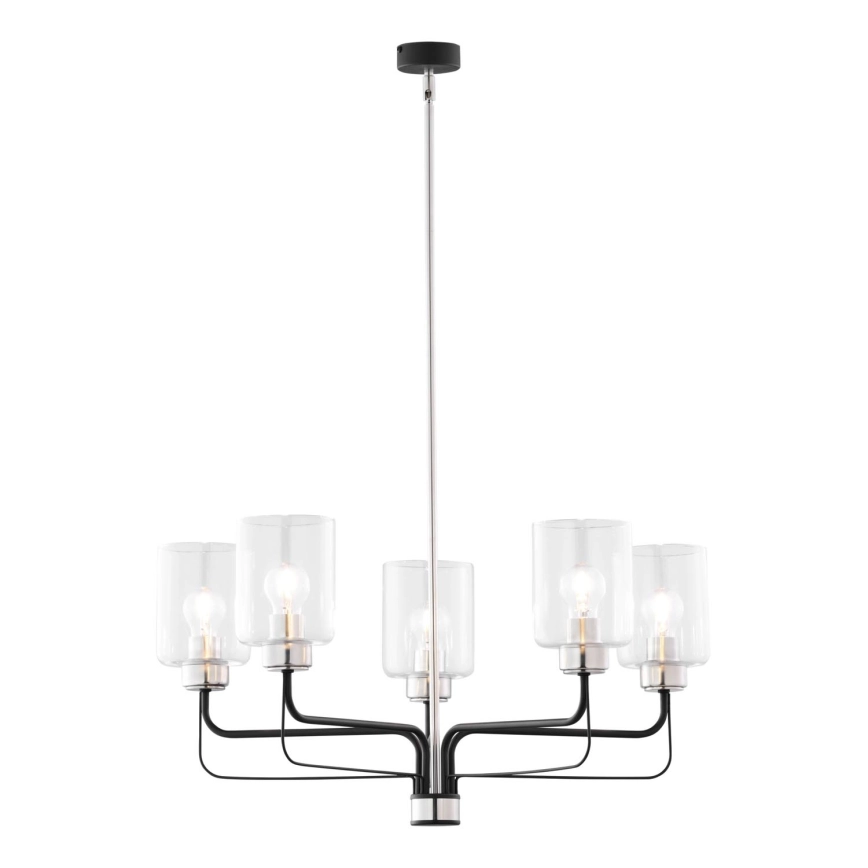El diseño bonito y funcional caracteriza a Jupiter 1884 - Lámpara colgante en varilla CERES 5xE27/15W/230V cromo mate/negro.  Una bombilla con casquillo E27 es adecuada para la lámpara. Aquí, puedes comprar otras bombillas a precios ventajosos. Será una adición interesante para tu hogar.