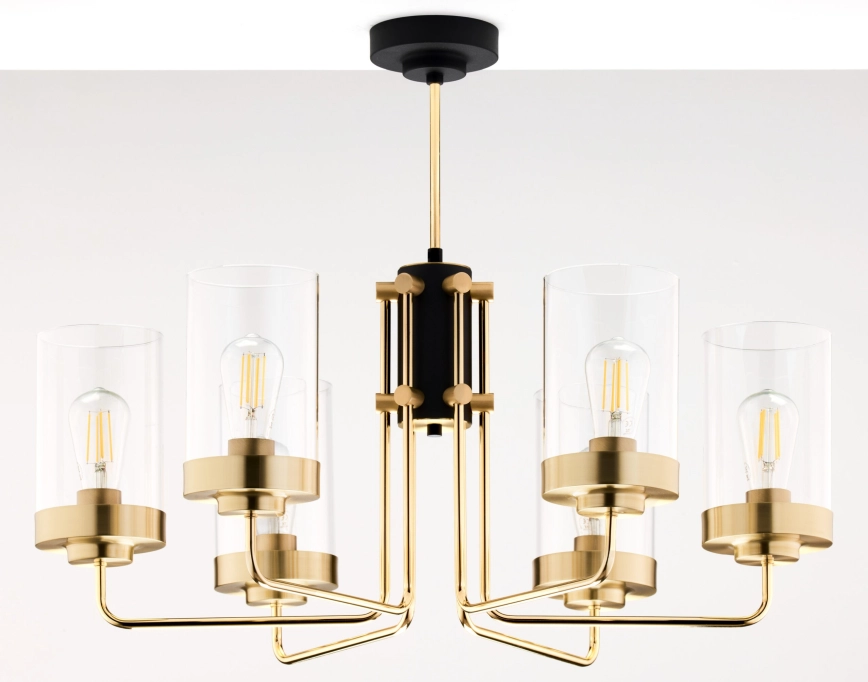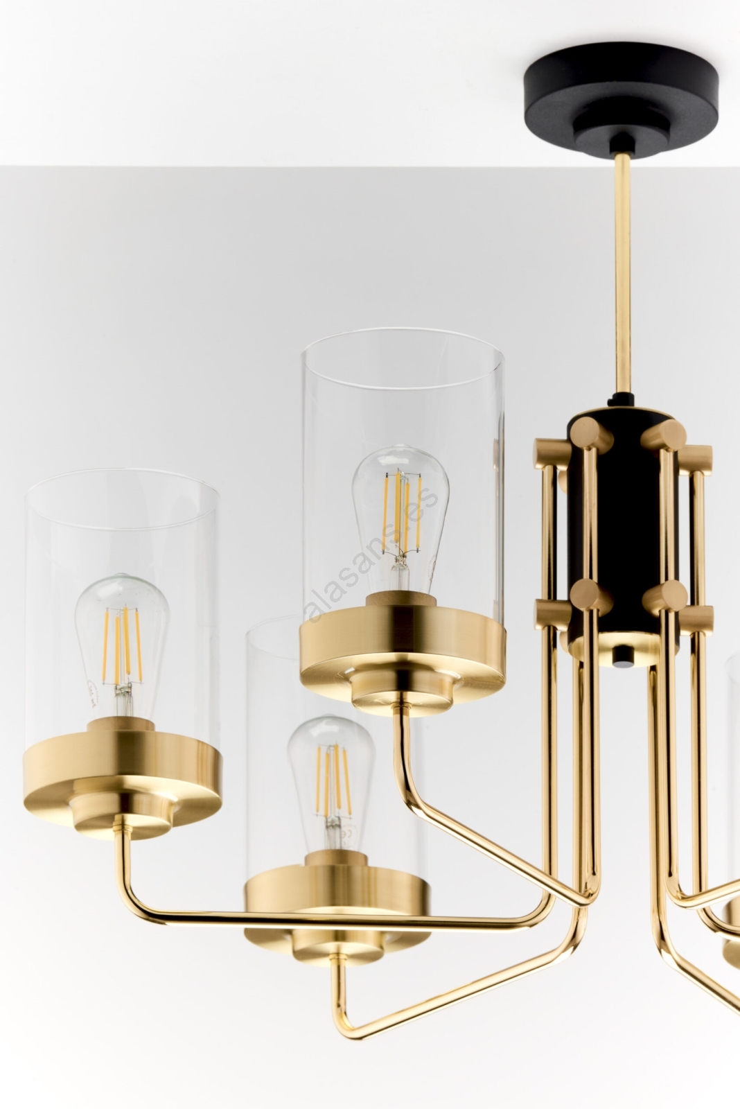 El diseño bonito y funcional caracteriza a Jupiter 2089 - Lámpara colgante con varilla RAMIREZ 6xE27/15W/230V oro/negro.  Una bombilla con casquillo E27 es adecuada para la lámpara. Aquí, puedes comprar otras bombillas a precios ventajosos. Será una adición interesante para tu hogar.