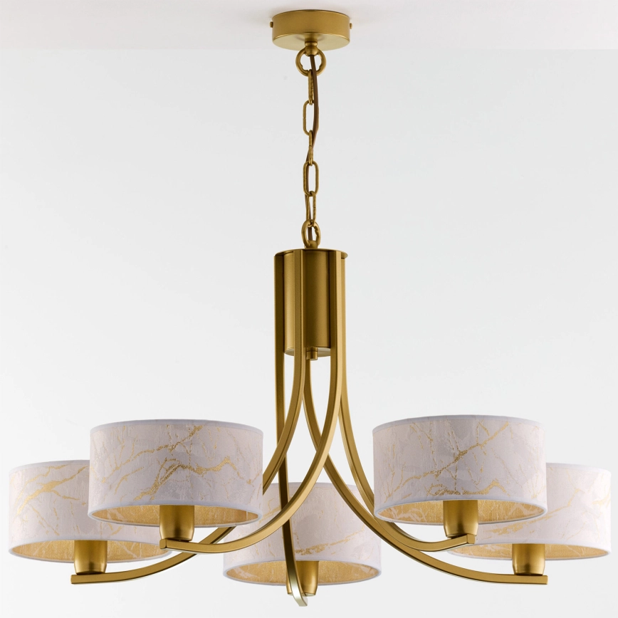 Jupiter 2097 - Lámpara colgante con cadena ARTHUR 5xE27/15W/230V blanca/dorada/decoración efecto mármol