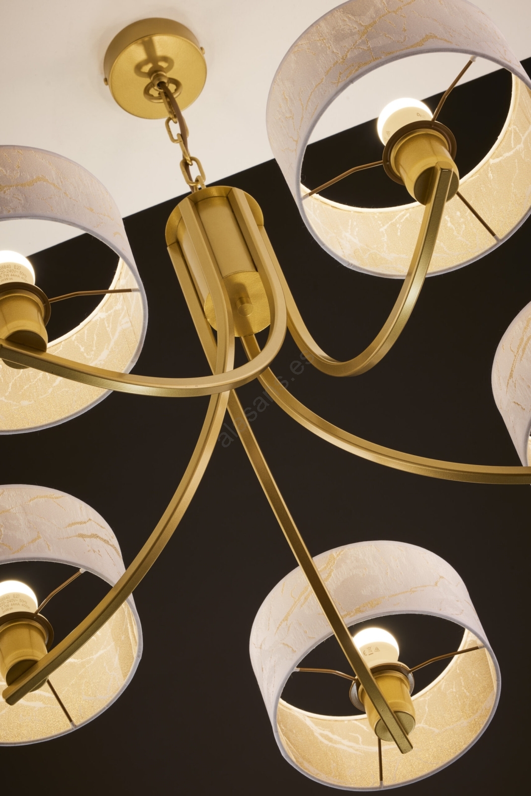El diseño bonito y funcional caracteriza a Jupiter 2097 - Lámpara colgante con cadena ARTHUR 5xE27/15W/230V blanca/dorada/decoración efecto mármol.  Una bombilla con casquillo E27 es adecuada para la lámpara. Aquí, puedes comprar otras bombillas a precios ventajosos. Será una adición interesante para tu hogar.