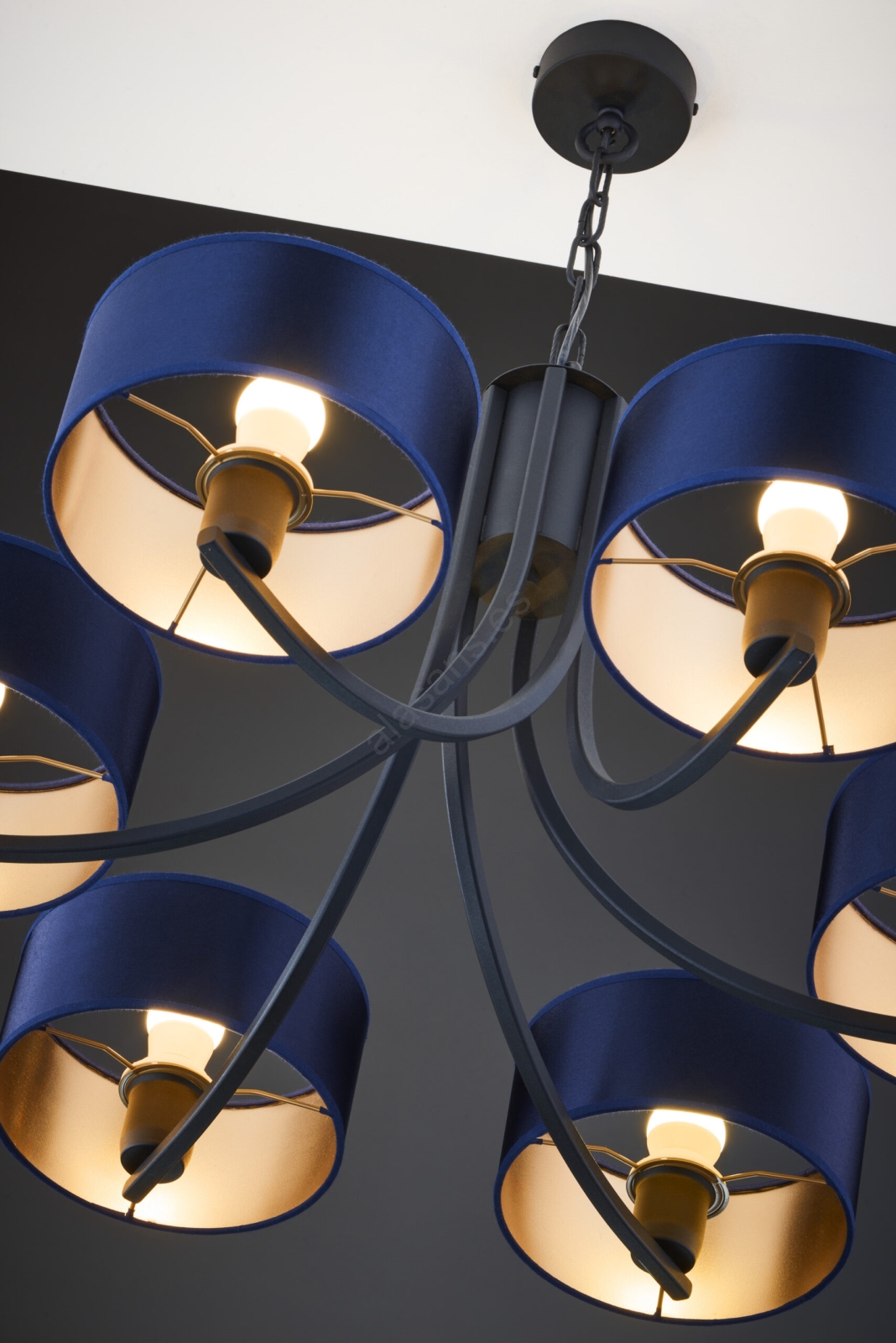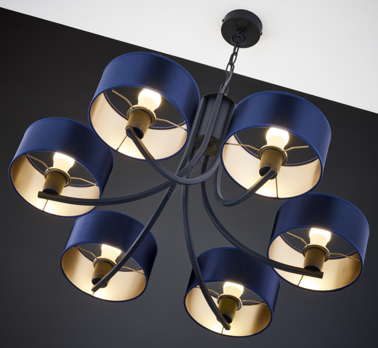 El diseño bonito y funcional caracteriza a Jupiter 2102 - Lámpara colgante ARTHUR con cadena 6xE27/15W/230V azul/negro.  Una bombilla con casquillo E27 es adecuada para la lámpara. Aquí, puedes comprar otras bombillas a precios ventajosos. Será una adición interesante para tu hogar.