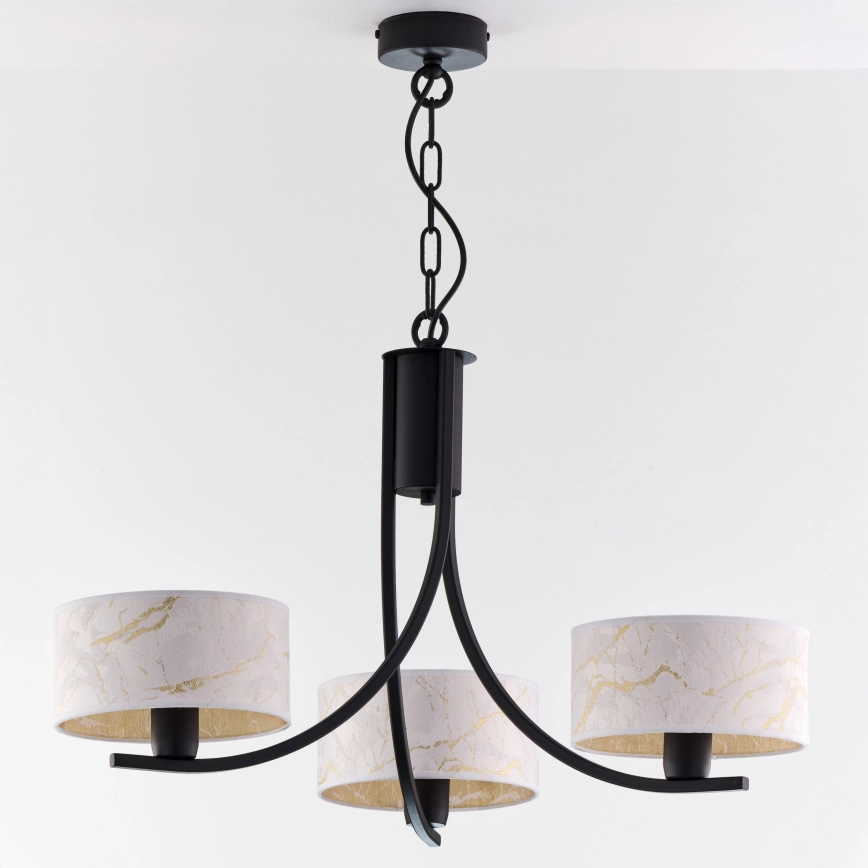 • Jupiter 2103 - Lámpara de araña con cadena ARTHUR 3xE27/15W/230V blanco/negro/efecto mármol