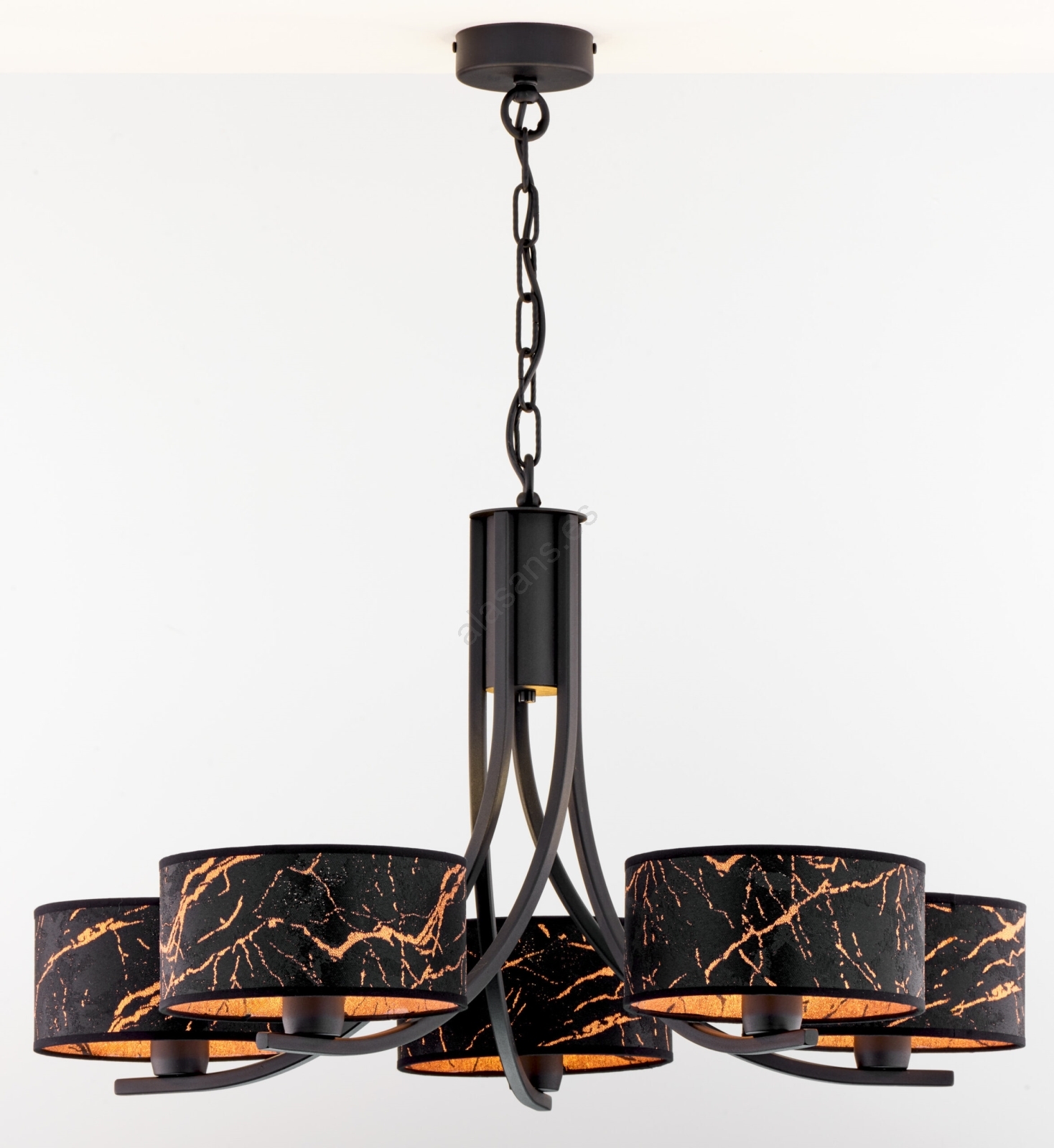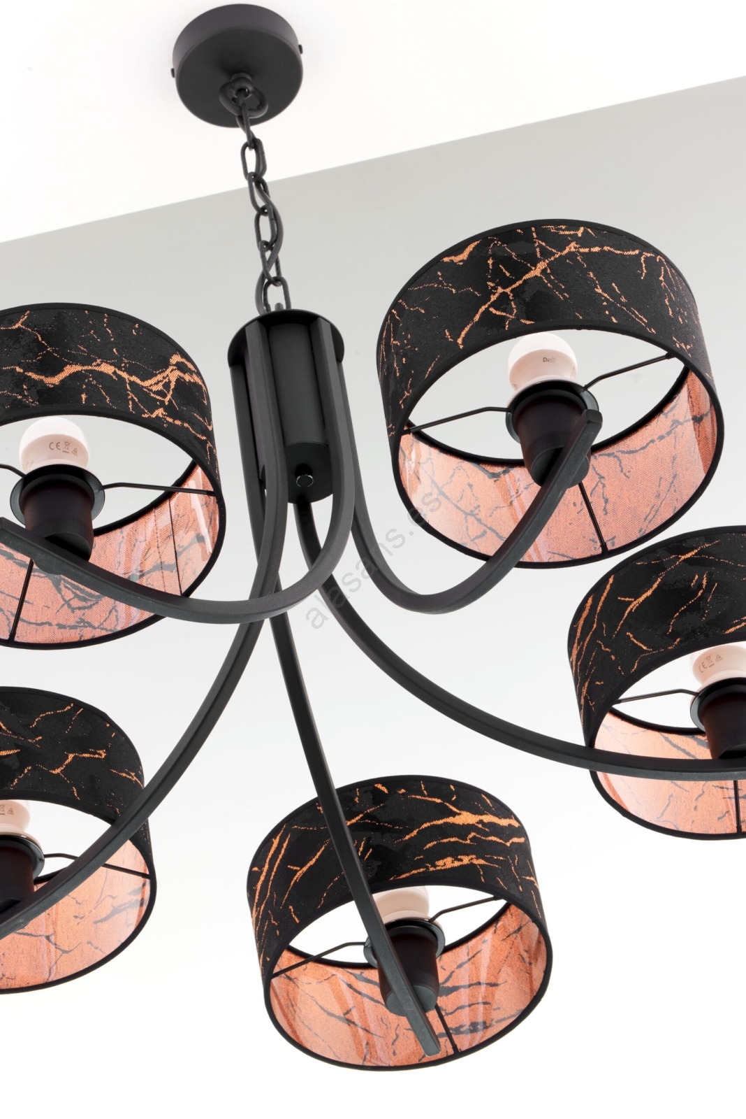 • Jupiter 2107 - Lámpara colgante en cadena ARTHUR 5xE27/15W/230V negra/naranja/con acabado tipo mármol