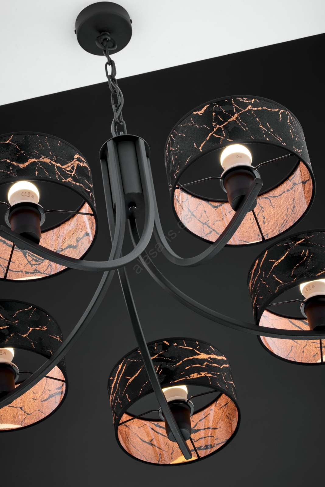 El diseño bonito y funcional caracteriza a Jupiter 2107 - Lámpara colgante en cadena ARTHUR 5xE27/15W/230V negra/naranja/con acabado tipo mármol.  Una bombilla con casquillo E27 es adecuada para la lámpara. Aquí, puedes comprar otras bombillas a precios ventajosos. Será una adición interesante para tu hogar.