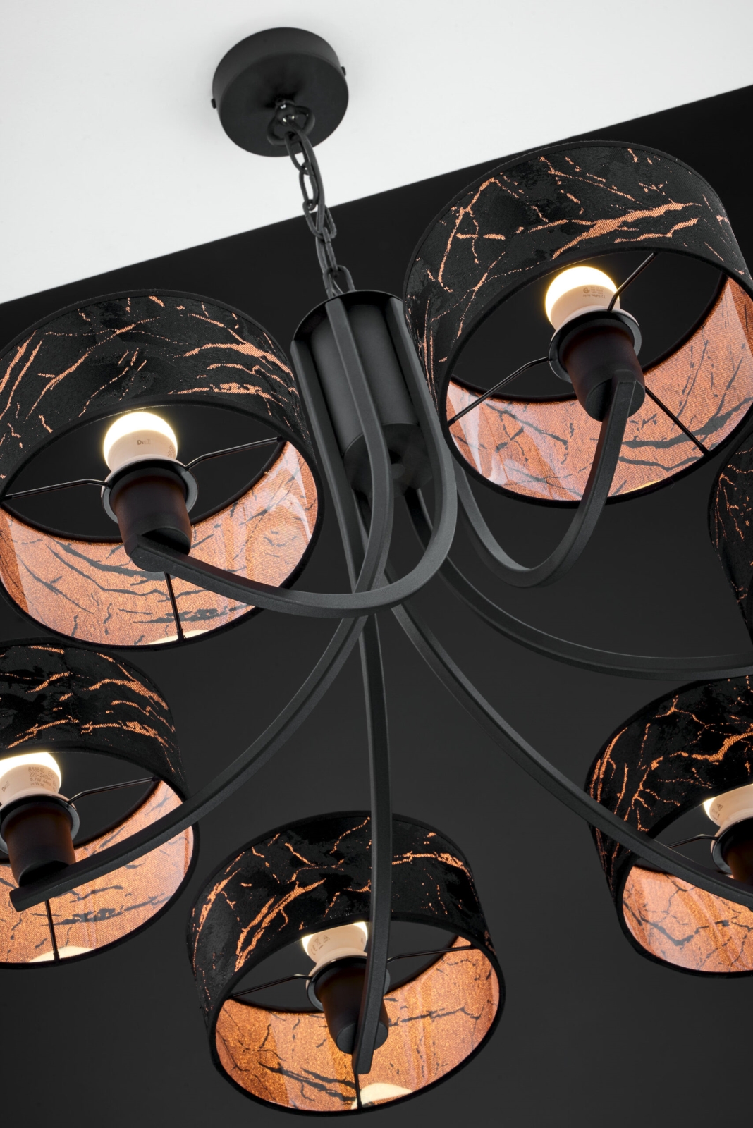 • Jupiter 2108 - Lámpara colgante con cadena ARTHUR 6xE27/15W/230V negro/naranja/con acabado en mármol