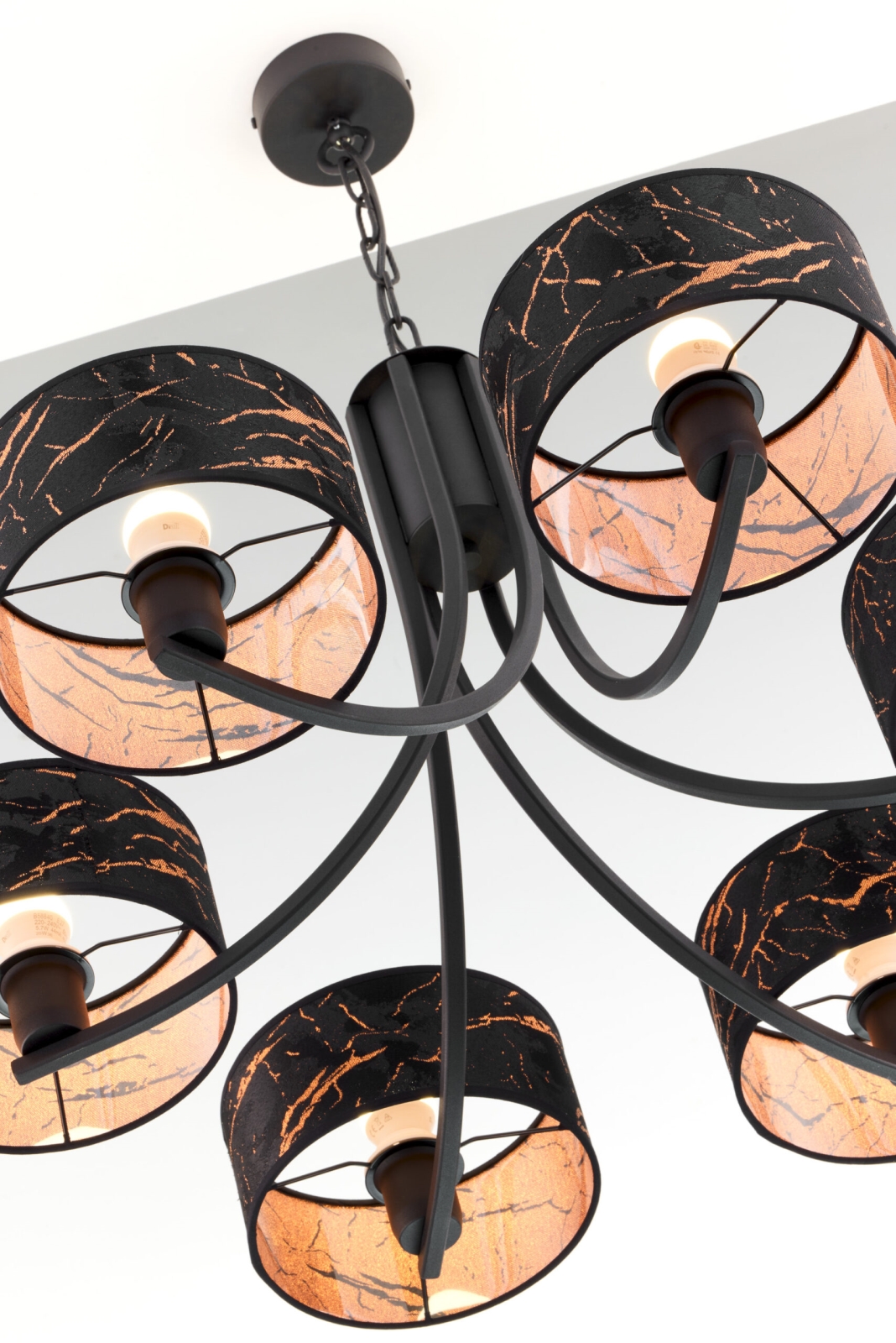 El diseño bonito y funcional caracteriza a Jupiter 2108 - Lámpara colgante con cadena ARTHUR 6xE27/15W/230V negro/naranja/con acabado en mármol.  Una bombilla con casquillo E27 es adecuada para la lámpara. Aquí, puedes comprar otras bombillas a precios ventajosos. Será una adición interesante para tu hogar.