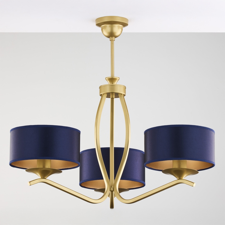 Jupiter 2113 - Lámpara colgante con varilla KASZMIR 3xE27/15W/230V azul/dorado