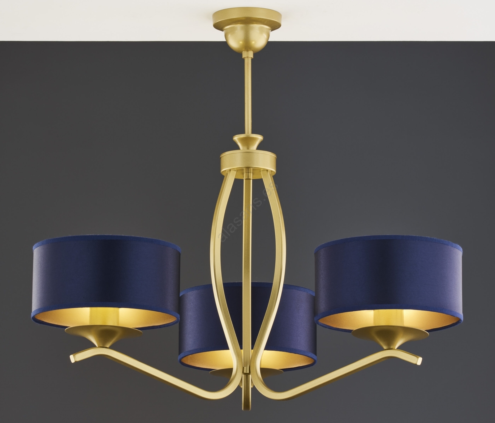 El diseño bonito y funcional caracteriza a Jupiter 2113 - Lámpara colgante con varilla KASZMIR 3xE27/15W/230V azul/dorado.  Una bombilla con casquillo E27 es adecuada para la lámpara. Aquí, puedes comprar otras bombillas a precios ventajosos. Será una adición interesante para tu hogar.