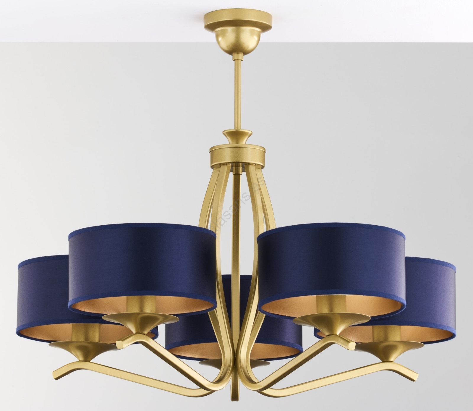 El diseño bonito y funcional caracteriza a Jupiter 2114 - Lámpara de techo con barra KASZMIR 5xE27/15W/230V azul/dorado.  Una bombilla con casquillo E27 es adecuada para la lámpara. Aquí, puedes comprar otras bombillas a precios ventajosos. Será una adición interesante para tu hogar.
