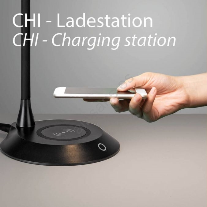 • JUST LIGHT. 14414-18 - Lámpara de sobremesa LED regulable, flexible y táctil con carga inalámbrica PUCKI LED/4,5W/230V negra
