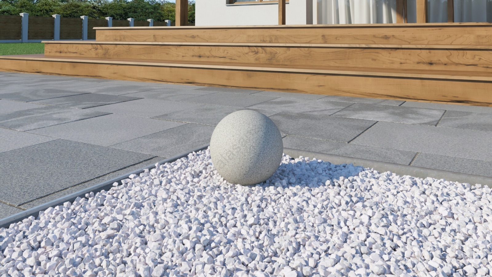 • Esta bola luminosa con acabado que imita la piedra es ideal para rocallas o para colocar alrededor de arbustos en el jardín.
