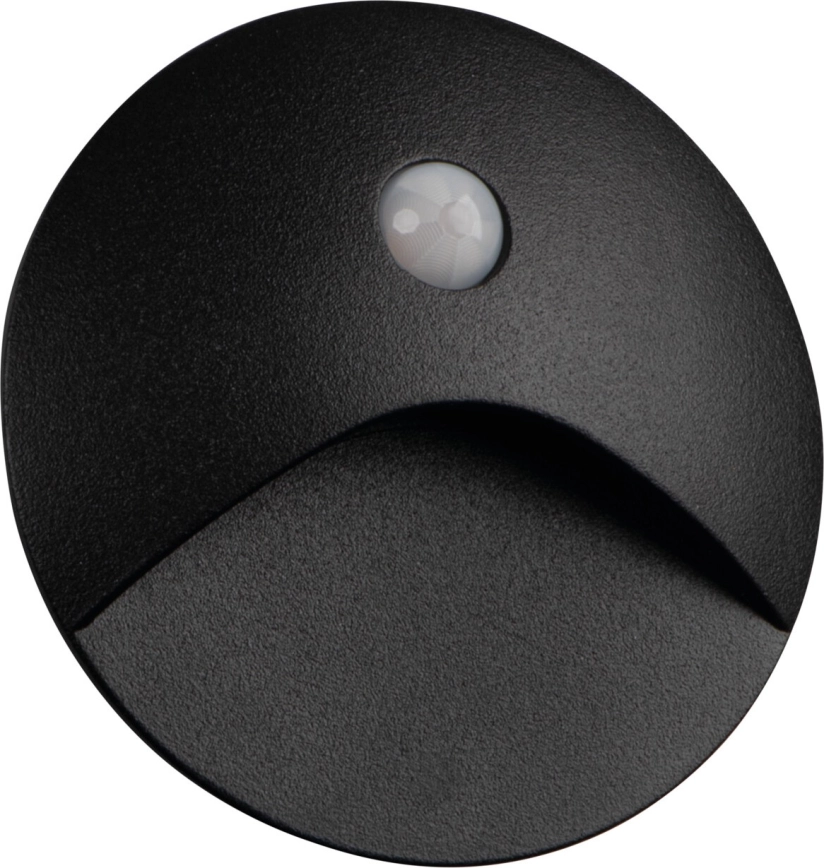 Aplique LED para escalera con sensor de movimiento y de crepúsculo EXIN LED/2,5W/230V 3000K IP65 negra redonda