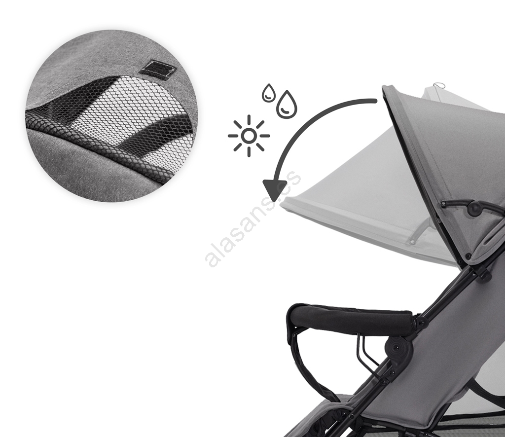 • La capota desplegable ofrece sombra y protección, además de contar con una ventana para mantener contacto visual con el niño.