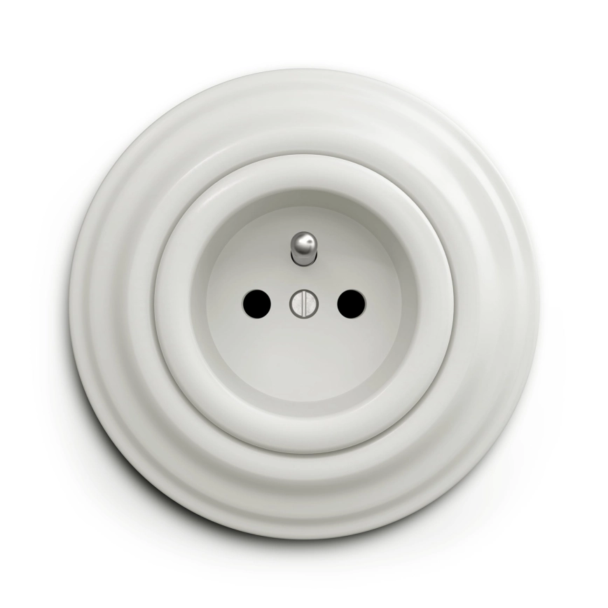 Kliklap - Enchufe doméstico retro con marco 230V blanco cerámico