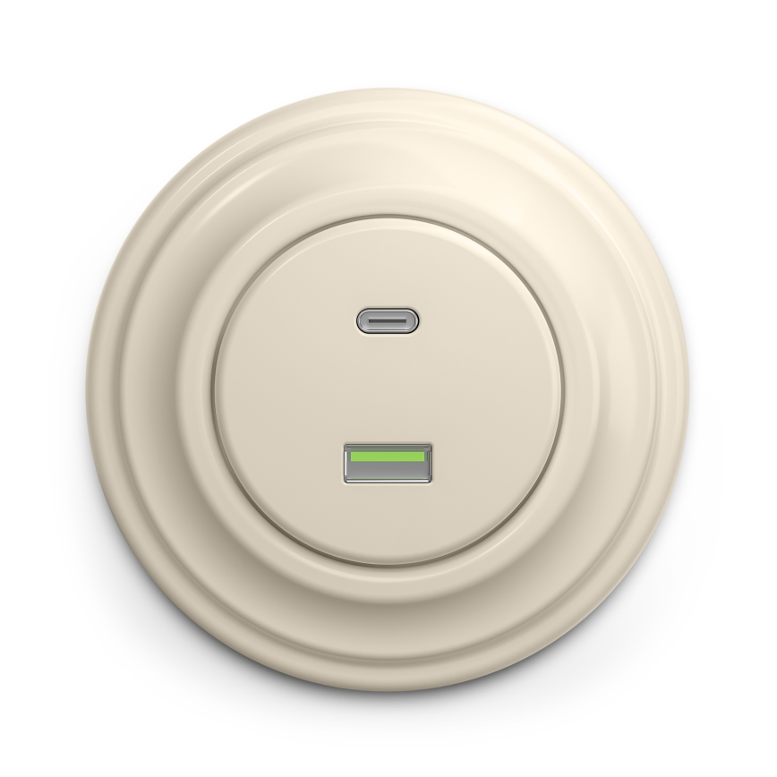 • Kliklap - Enchufe USB retro A+C con marco beige