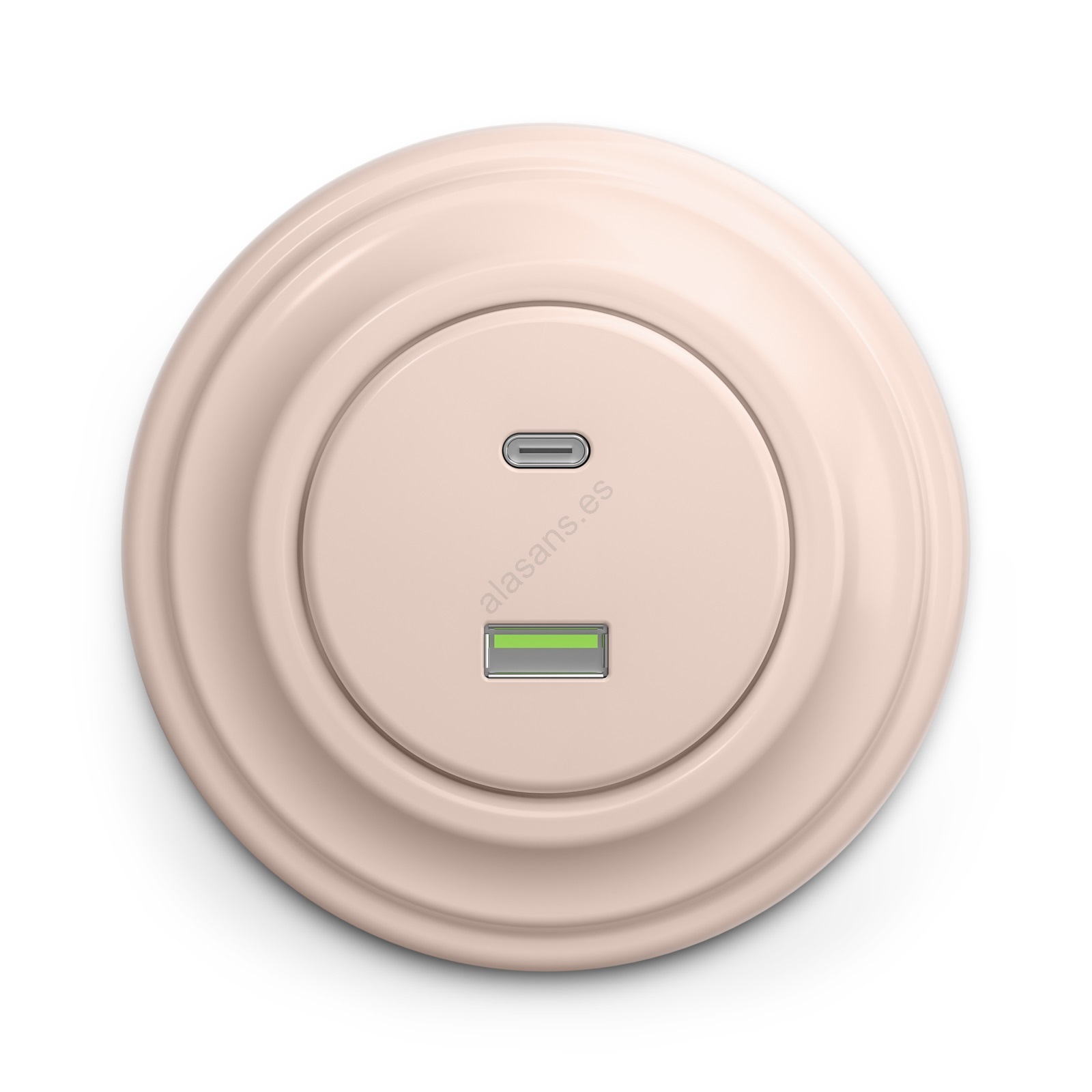 Kliklap - Enchufe USB retro A+C con marco, rosa empolvado