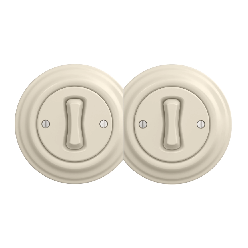 Kliklap - Interruptor doble unipolar de estilo retro con marco n.º 1, beige