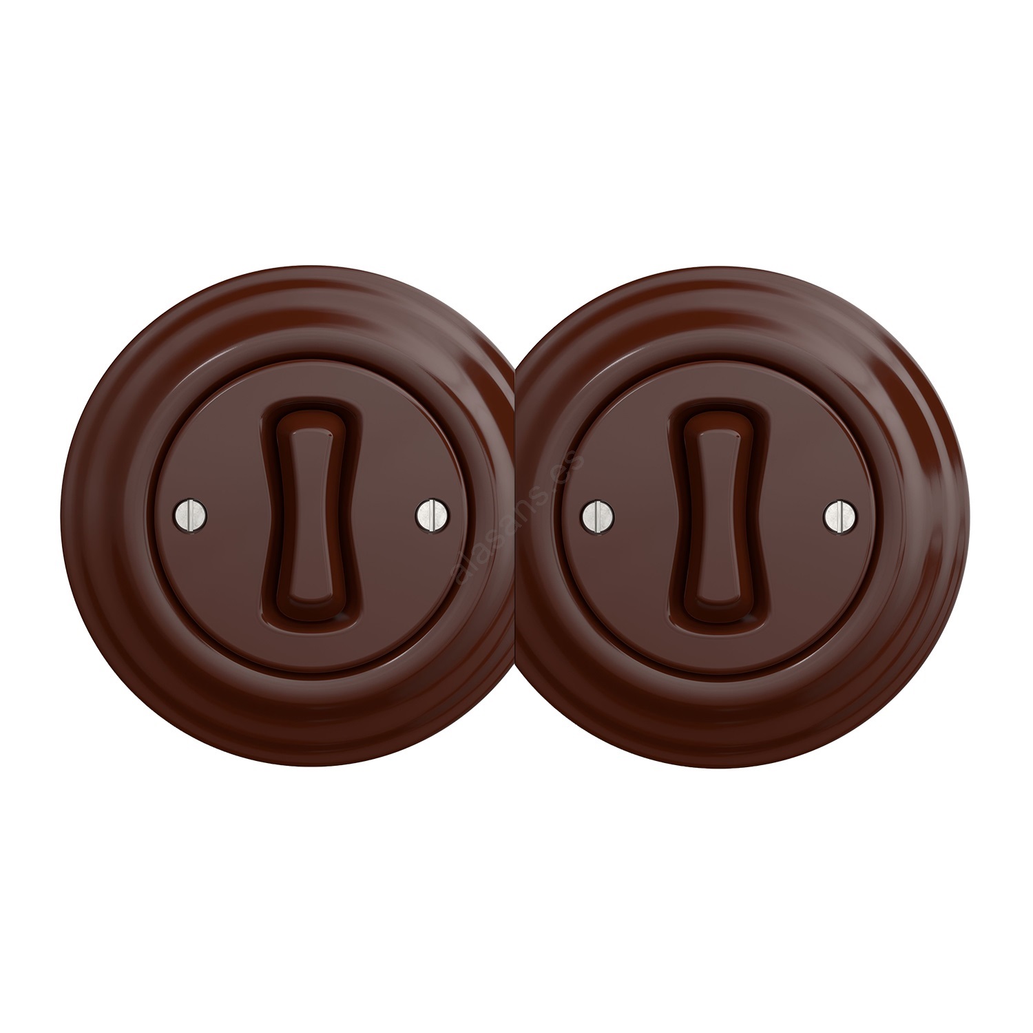 Kliklap - Interruptor unipolar doble de estilo retro con marco n.º 1, marrón