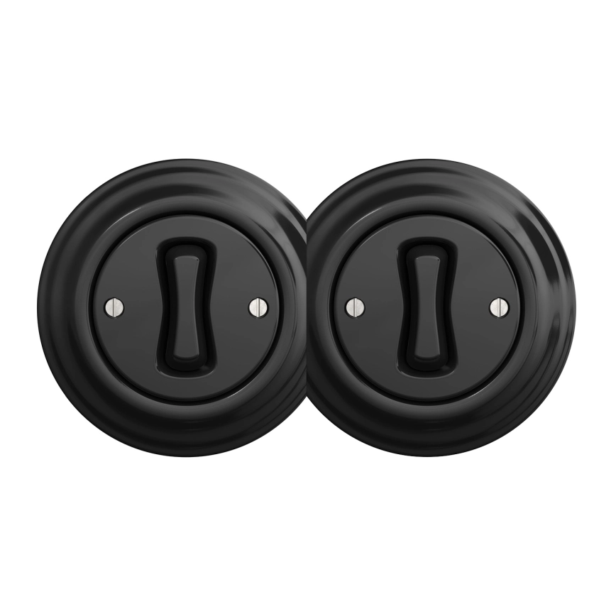 Kliklap - Interruptor doble unipolar de estilo retro con marco n.º 1, negro