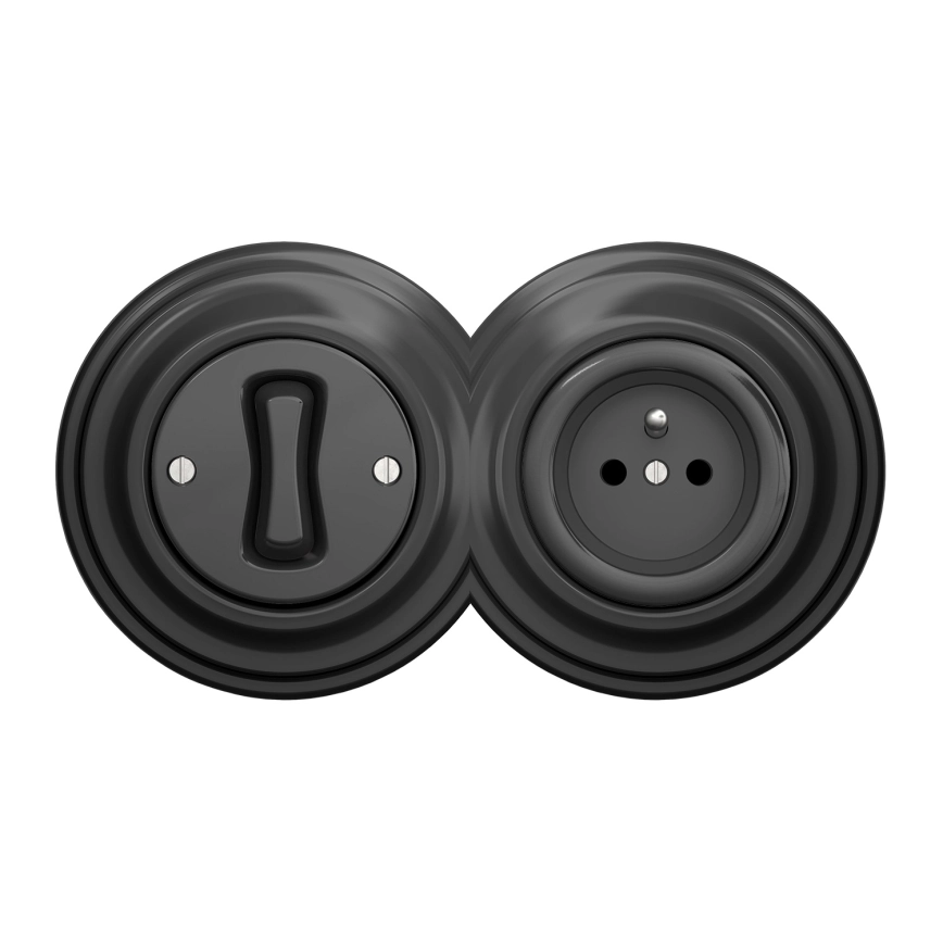 Kliklap - Interruptor unipolar retro n.º 1 y enchufe 230 V con marco antracita