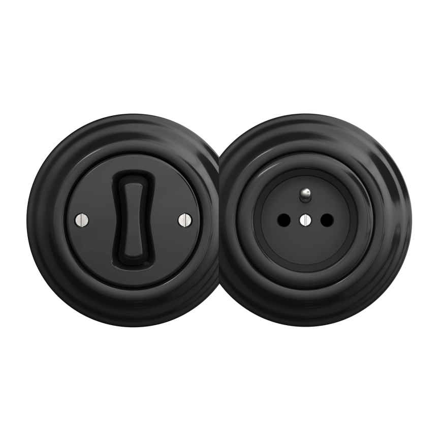 Kliklap - Retro interruptor unipolar n.º 1 y toma de corriente 230 V con marco negro
