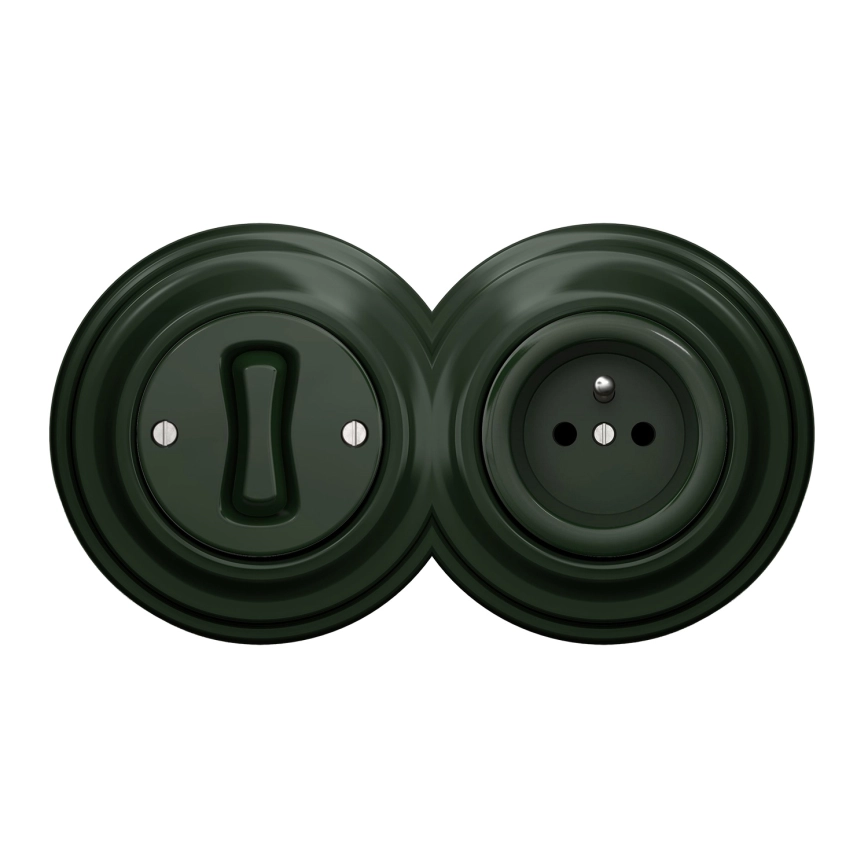 Kliklap - Interruptor unipolar retro n.º 1 y toma de corriente 230 V con marco verde