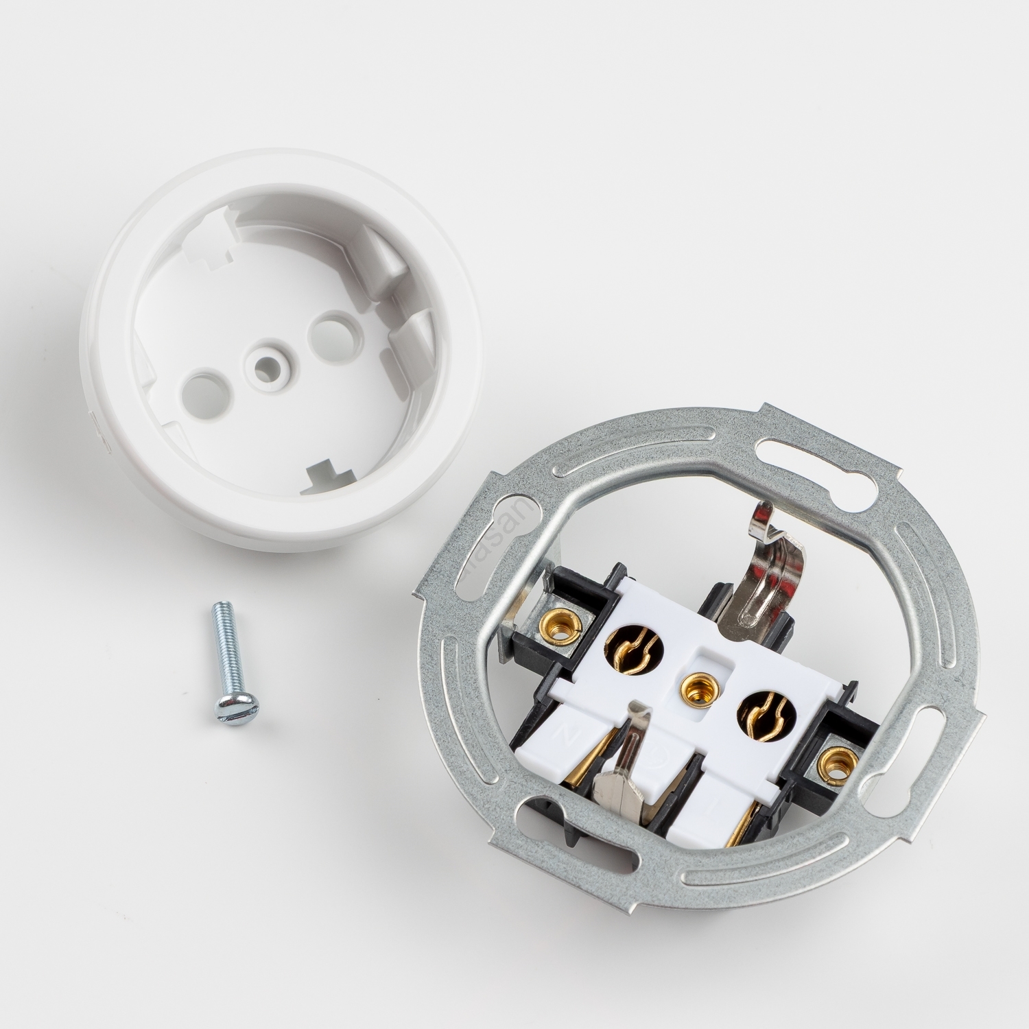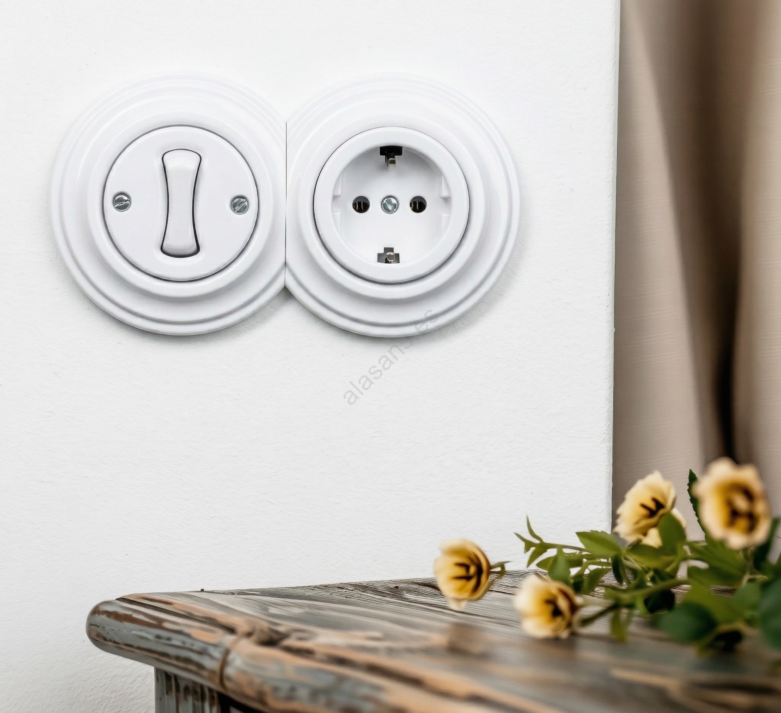 • Kliklap - Interruptor unipolar retro n.º 1 y enchufe SCHUKO 230 V con marco cerámico blanco