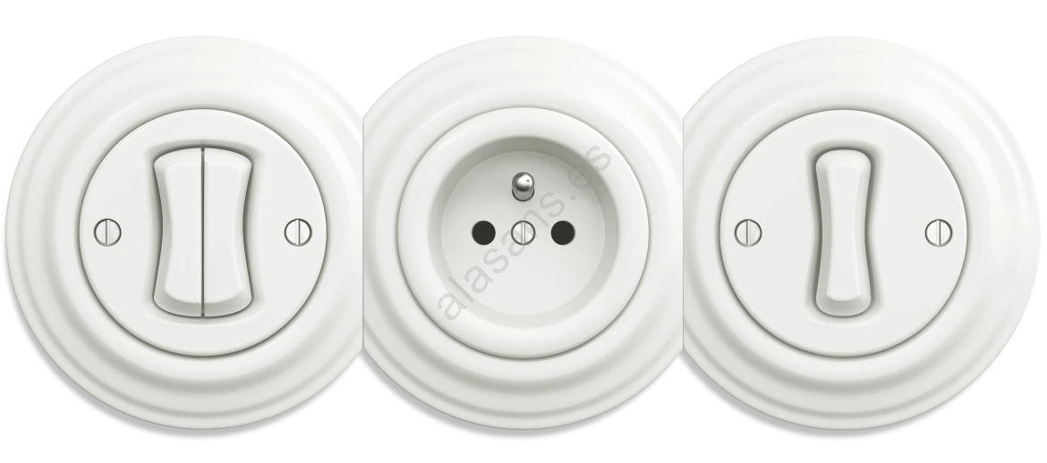 • Interruptor redondo en tono blanco cerámico.
