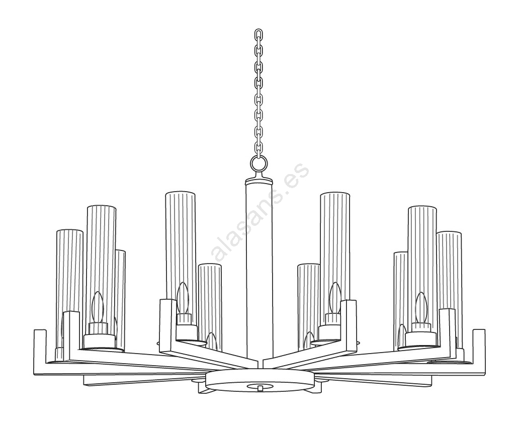 • Fabricada con base y cuerpo de metal niquelado, brazos cepillados y tulipas de vidrio transparente estriado.