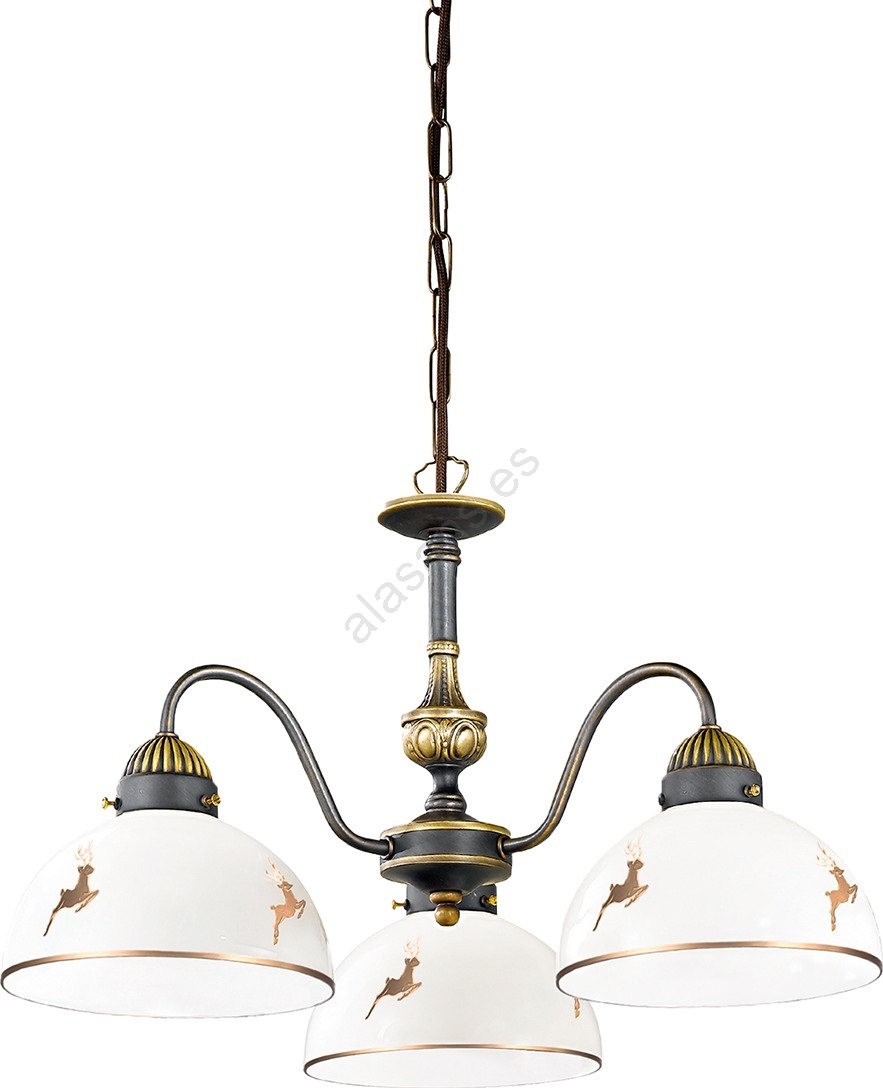 • Kolarz 731.83.150 - Lámpara colgante con cadena NONNA 3xE27/75W/230V, diseño con motivos de ciervo, acabado oro rosa