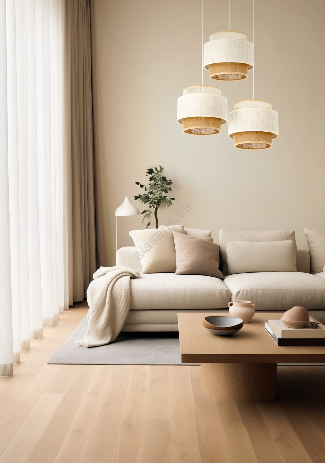 • Lámpara colgante BOHO con cable 3xE27/60W/230V blanco/yute