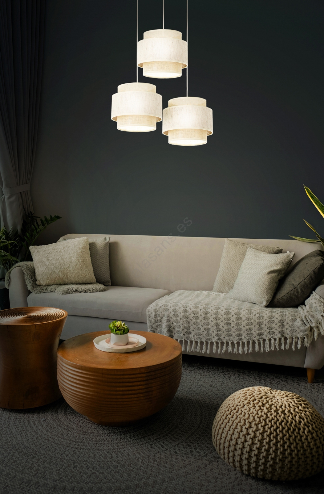 • Lámpara colgante con cable BOHO 3xE27/60W/230V yute/crema