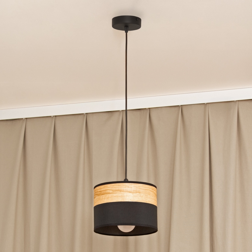 Lámpara colgante con cable ALBA 1xE27/15W/230V Ø 20 cm negro/marrón