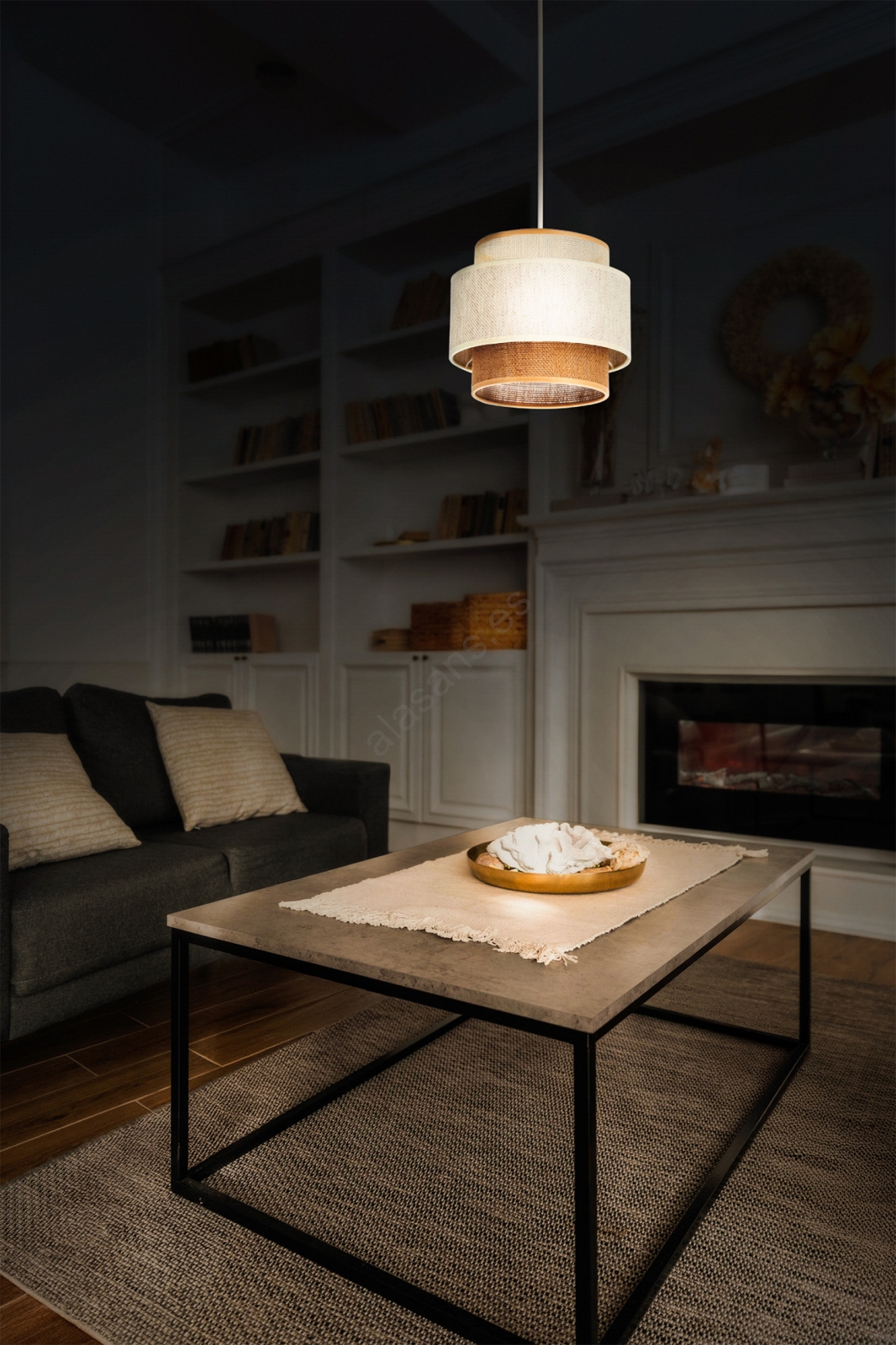 • Lámpara colgante BOHO sobre cable, 1xE27/60W/230V, diámetro 20 cm, crema/yute