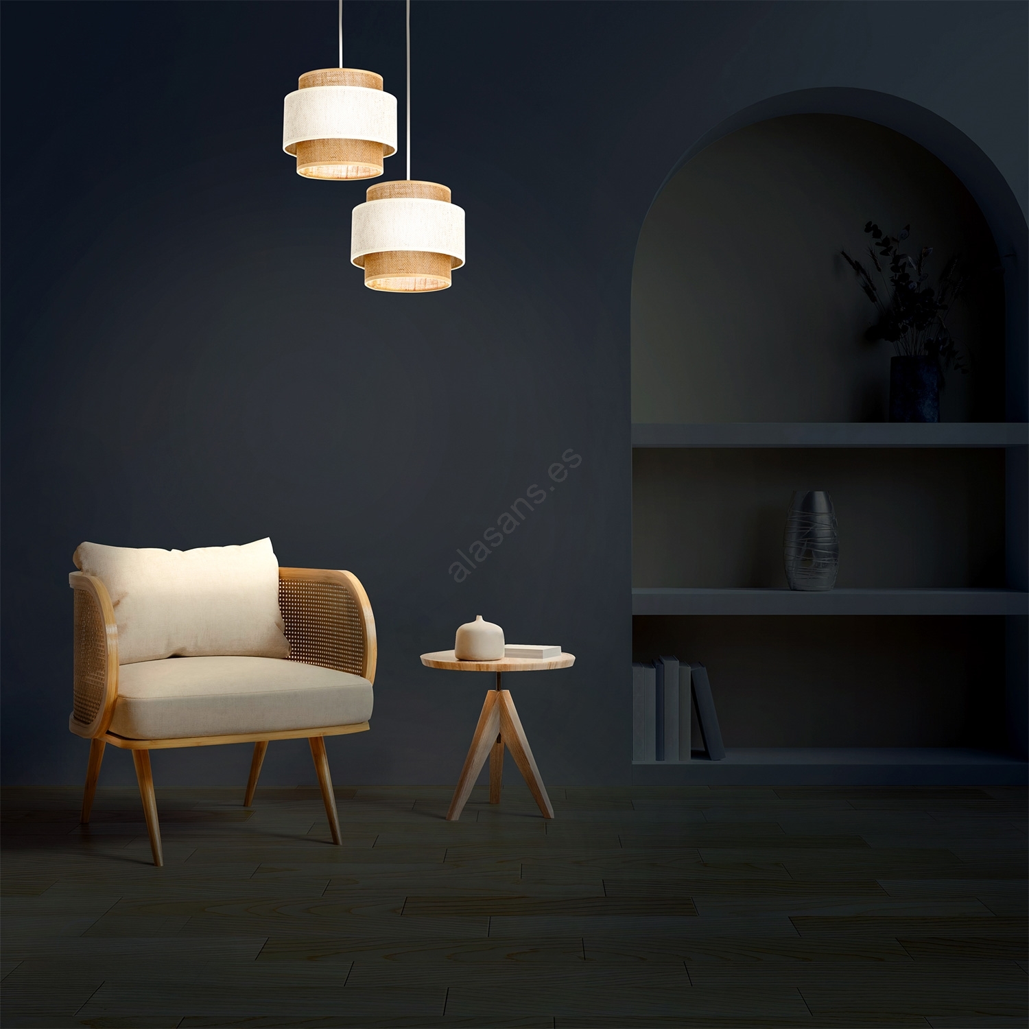 • Lámpara colgante con cable BOHO 2xE27/60W/230V blanca/yute
