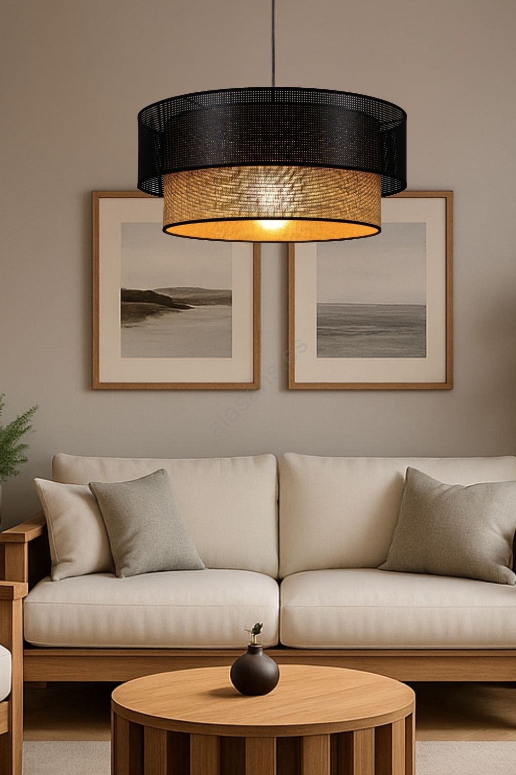 • Lámpara colgante BORHO 1xE27/60W/230V Ø 50 cm negro/yute