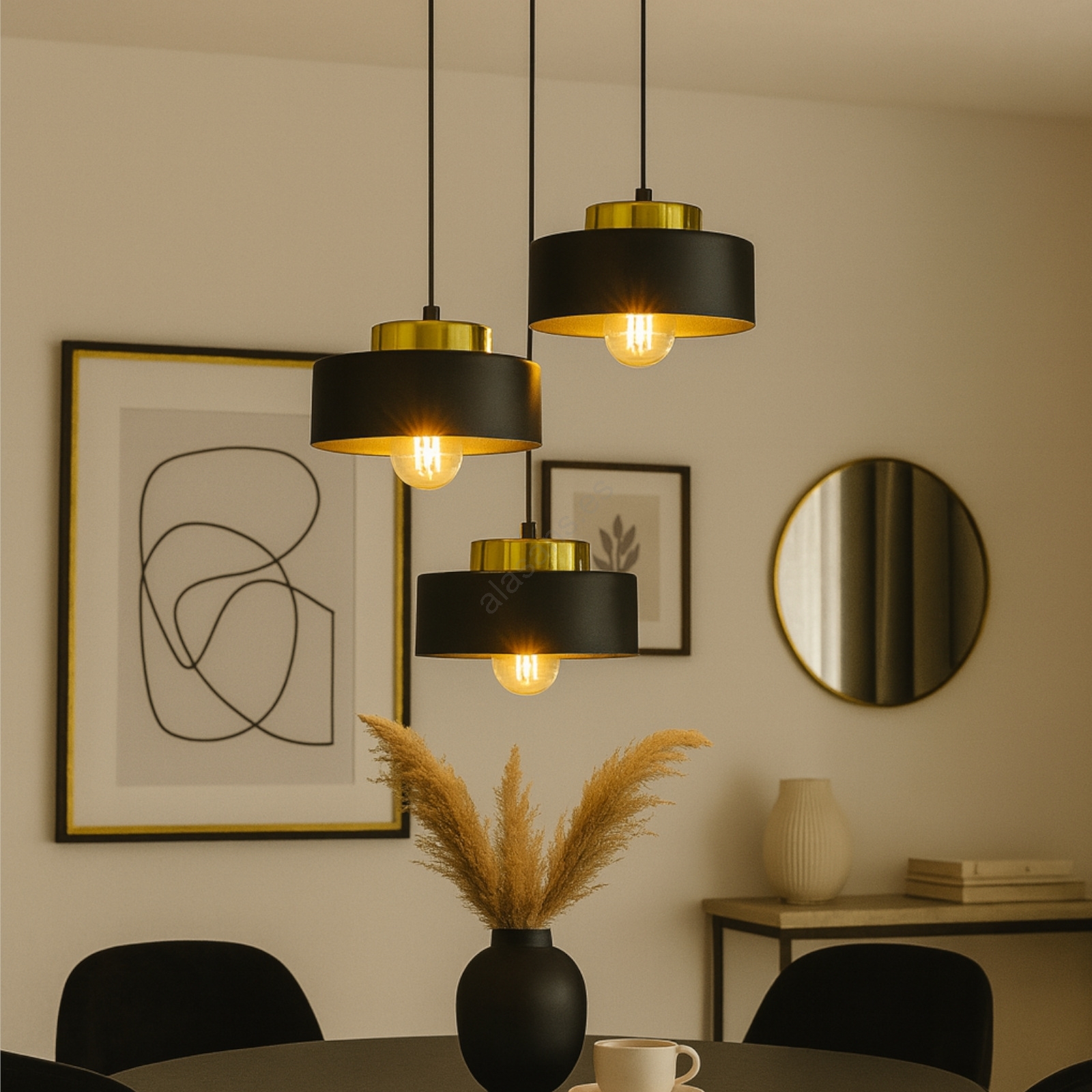 El diseño bonito y funcional caracteriza a Lámpara colgante con cable IGNIA 3xE27/60W/230V negro/dorado.  Una bombilla con casquillo E27 es adecuada para la lámpara. Aquí, puedes comprar otras bombillas a precios ventajosos. Será una adición interesante para tu hogar.