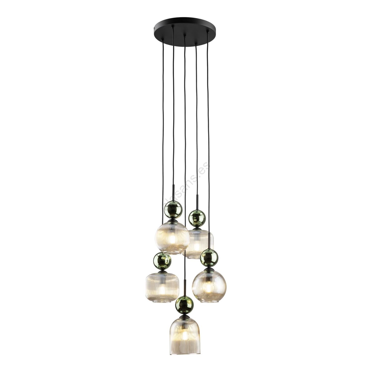 Lámpara colgante con cable SOPHIA 5xE14/10W/230V negra/verde/beige ahumado